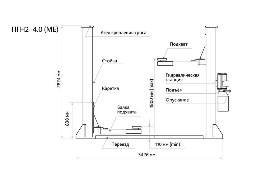 Подъемник 2-х стоечный, 4 т., ПГН2-4.0 (МЕ) 380В