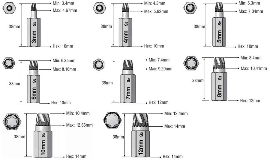 Экстракторы Torx, набор 8 предметов