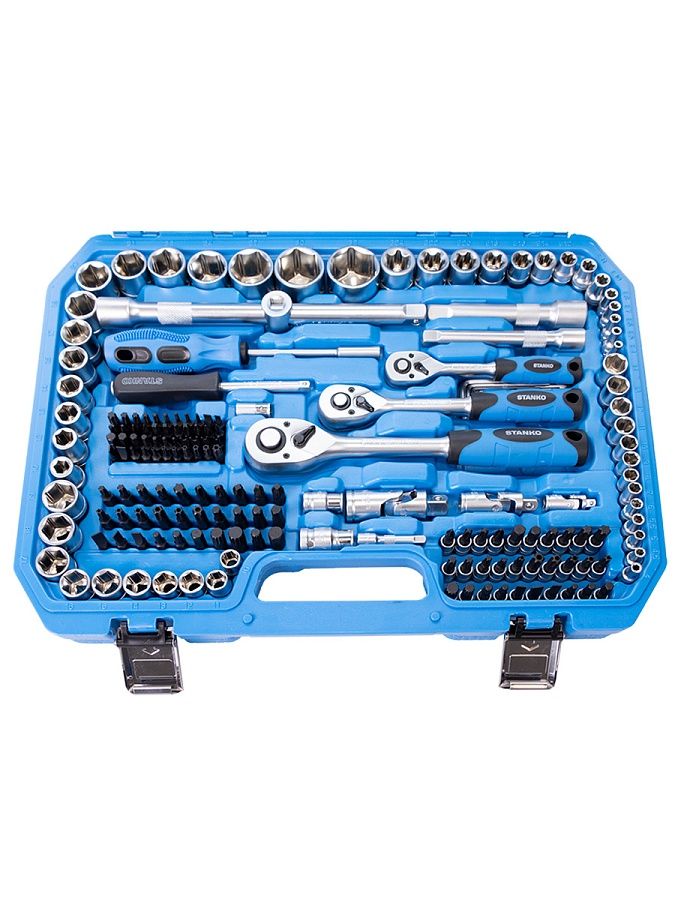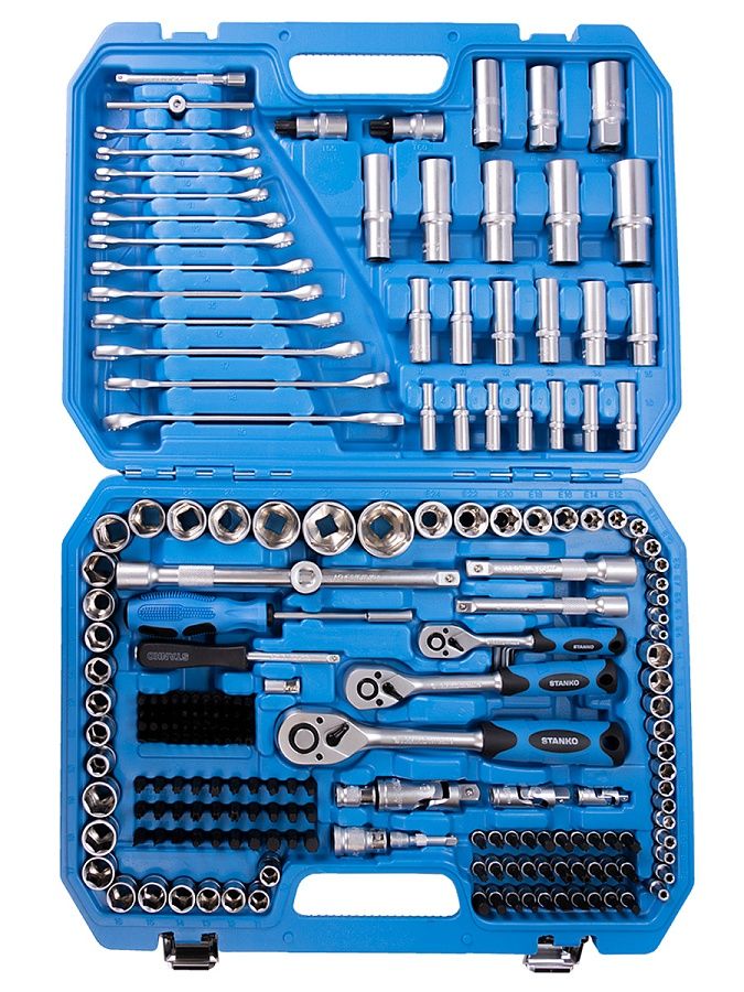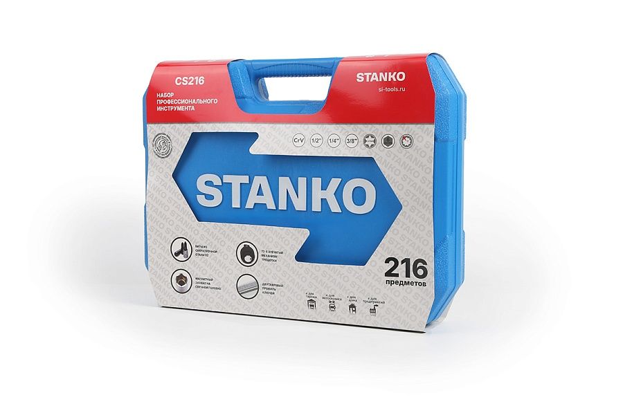 Универсальный набор инструментов 216 предметов от бренда STANKO в первую очередь предназначен для монтажных, демонтажных и ремонтных работ. Может применяться как в автосервисах, мастерских и СТО, так и в гараже или дома для бытового использования.