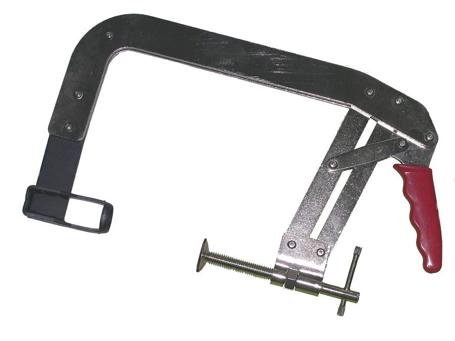 Фиксация струбцины в необходимом положении позволяет освободить руки для удобства демонтажа стопорных сухарей клапана.