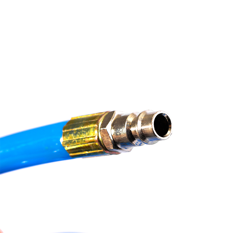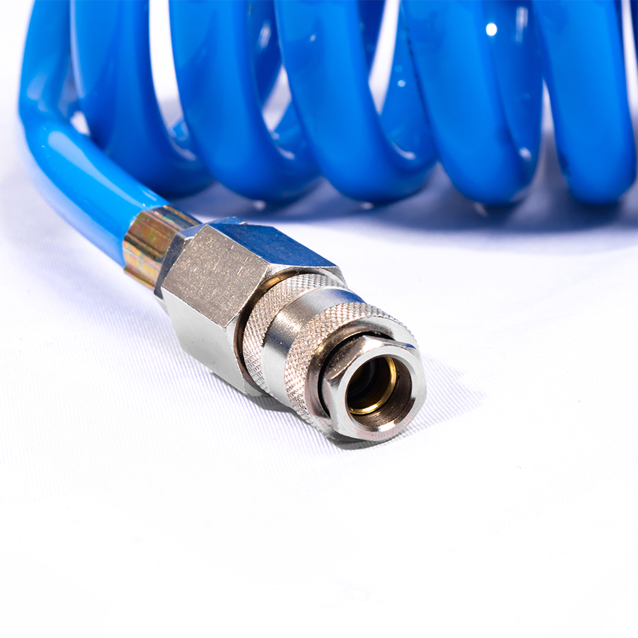 Шланг воздушный спиральный применяется для подачи воздуха от компрессора или линии сжатого воздуха к пневмоинструменту. За счет своей формы в виде спирали, шланг имеет достаточно компактный размер и не мешается под ногами.