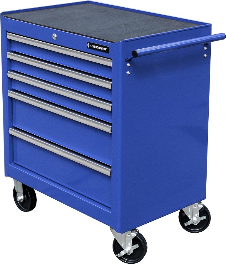Тележка инструментальная для автосервиса с 5 ящиками, синего цвета