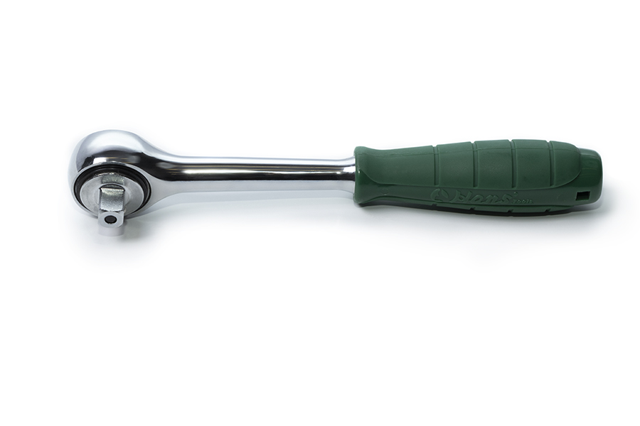 Трещотка с храповым механизмом и круглой головкой отличается простотой и удобством в применении. Трещоточный механизм ключа позволит работать им, не отрывая от закручиваемой детали. Резиновая накладка на ручке не позволяет инструменту скользить. Имеет кнопку быстрого сброса.