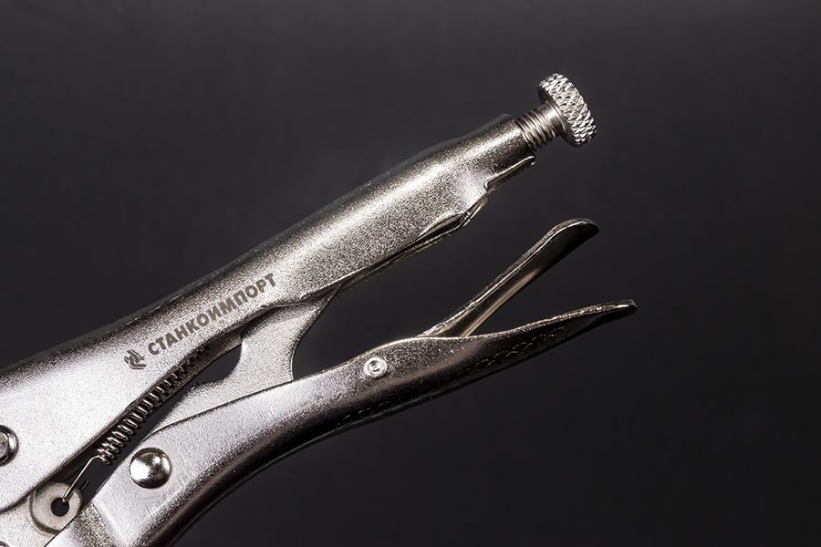 Струбцина применяется при сварочных работах для поддержки и закрепления круглых деталей. Износостойкие захватные губки с крупной насечкой обеспечивают крепкий зажим. Инструмент имеет простую и удобную регулировку зева с помощью винта на рукоятке. Предусмотрен рычаг разблокировки для быстрого разжатия клещей. Конструкция рукоятки позволяет снять с руки значительную часть нагрузки при проведении работ. Это дает возможность работать одной рукой.